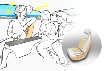 後ろを向きやすいシート構造にすることで、顔を見て会話することができ、乗員がみんな笑顔に