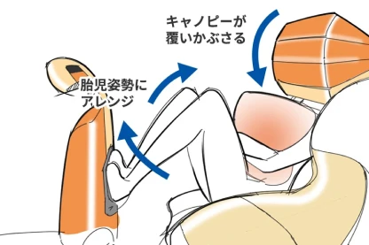 お母さんのお腹の中にいるような胎児姿勢にシートアレンジされ、リラックスできる安心空間
