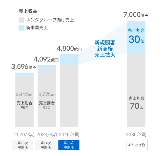 ホンダグループ以外の顧客獲得に向けて設立された新事業統括本部の指揮の下、全世界のお客さまをターゲットとした、戦略的な営業活動を展開していきます。お客さまごとのニーズを見定めた開発・営業活動によりさらなる拡販を図っていきます。