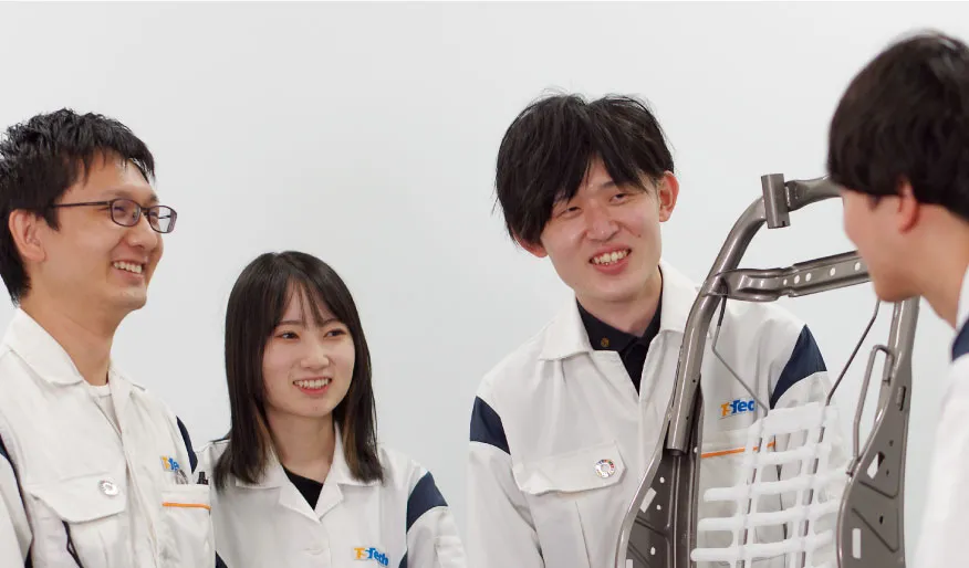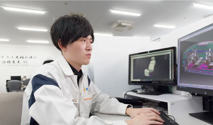 幼少期に車好きの父と訪れた東京モーターショーで、将来、自動運転やロボットが自動車を操縦する夢のような世界がやってくることに衝撃を受け、いつかこんな世界を実現したいという夢を抱くようになりました。また、学生時代に鳥人間コンテストへ出場した経験があり、人力で動かすモノづくりの楽しさを学び、より人に近い製品を作るエンジニアになりたいと思いました。大学院ではどちらかと言えば自動車よりも航空機に関連した勉強をしてきましたが、企業研究の過程でテイ・エス テックとJAXAの共同開発を知り、その技術力の高さに驚きました。また、シートは人に最も近い製品であり、誰かの役に立っているということを感じるモノづくりができることから興味を持ちました。自動車業界が大変革期を迎える中、未来の車室内空間を造り出すことで誰かの役に立つということにやりがいを感じるとともに、自分の夢も実現できると考え、最終的に入社を決めました。